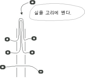 자, 완성이다. 왼쪽 줄을 당겨보자. 또 오른 쪽 줄도 당겨보자. 빠져 나오는 줄의 길이가 이상하다?