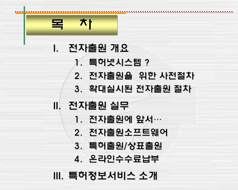 전자출원제도 ppt 작성자혜란|작성시간22.03.18|조회수129 목록 댓글 0 글자크기 작게가 글자크기 크게가 전자출원제도ppt.ppt2.36MB 첨부파일첨부된 파일이 2개 있습니다. png 파일 1.png 다운로드 ppt 파일 전자출원제도ppt.ppt 다운로드 다음검색 현재 게시글 추가 기능 열기 북마크 공유하기 신고 센터로 신고 댓글 댓글 0 댓글쓰기 답글쓰기 댓글 리스트