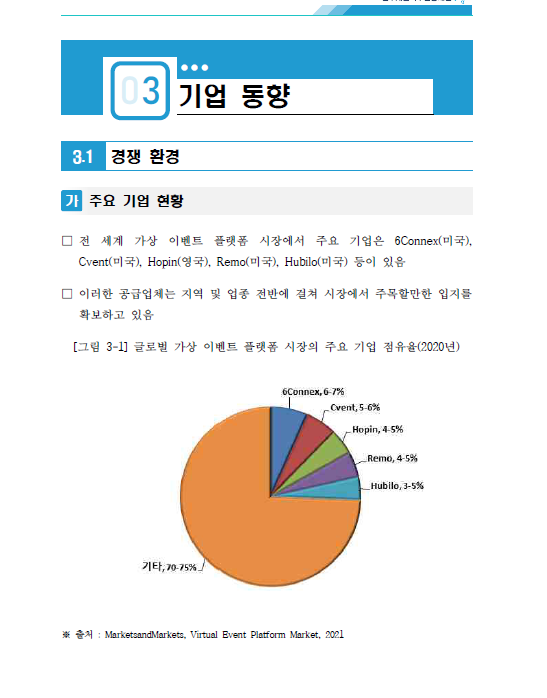 시장 수요조사 결과를 적시할 때는 한국전자통신연구원(지식공유플랫폼-https://ksp.etri.re.kr/ksp/)에 접속을 하면 해당 기술에 대한 논문, 특허, 기술이전, 연구보고서 등을 검색하여 볼 수 있다. 이외에 해외 유명 컨설팅 회사인 MarketsandMarkets (마켓츠앤마켓츠)의 자료를 보면 도움을 받을 수 있는데 유료이기 때문에 부담이 된다.