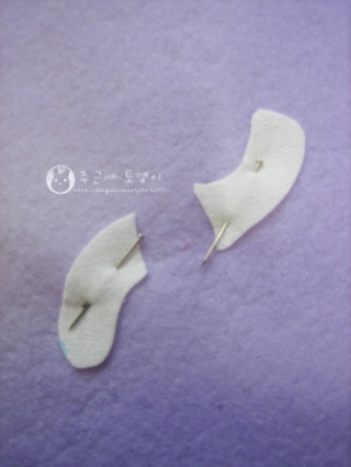 고정을 시켜 주고요 배 부분에 솜을 넣어서