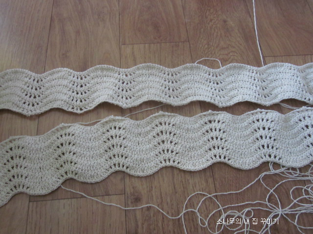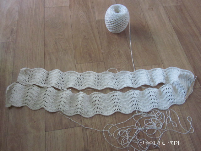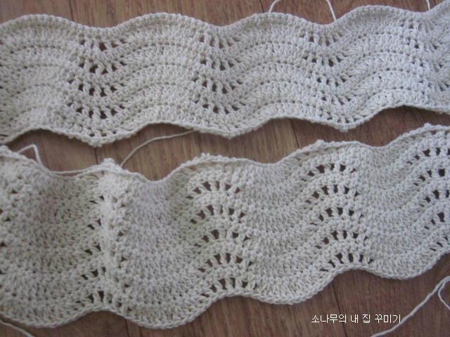 테두리 짧은뜨기 4번씩하고 끝은 레이스 뜨기로..