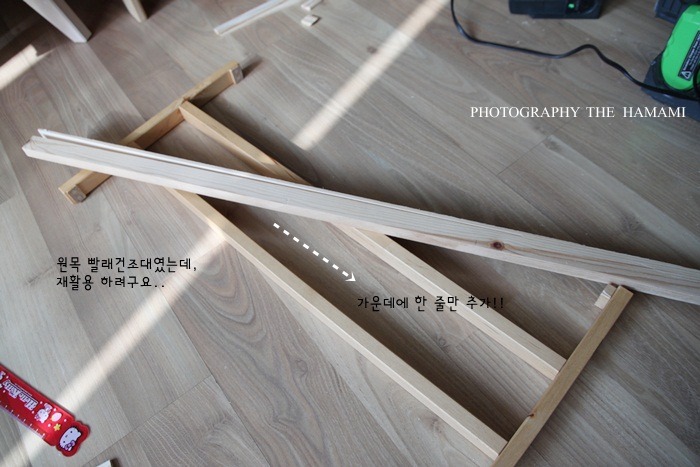 원목 빨래 건조대로 사용하던 틀이 남아 있어서