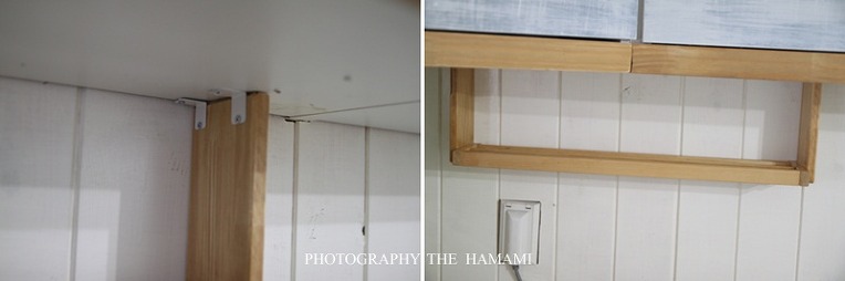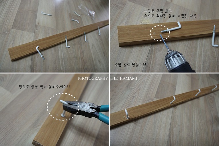 화이트 꺽쇠로 건조대를 싱크대 아랫쪽에 박아줍니다.