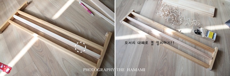 모서리 대패로 결을 부드럽게 정리해줍니다.