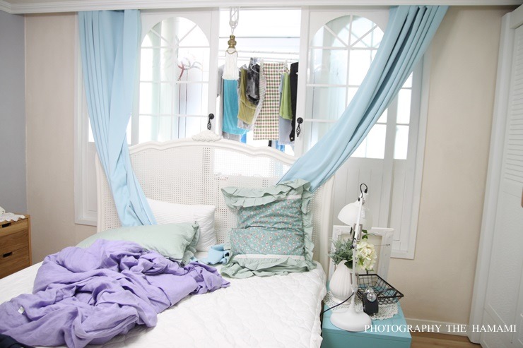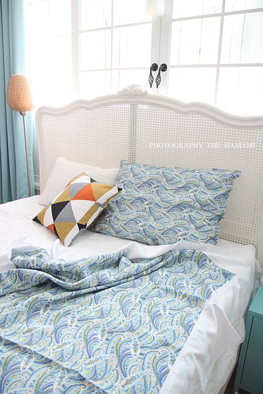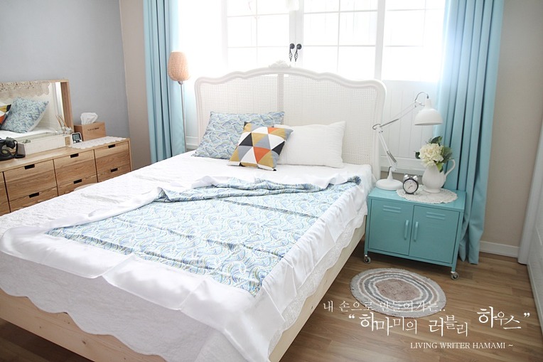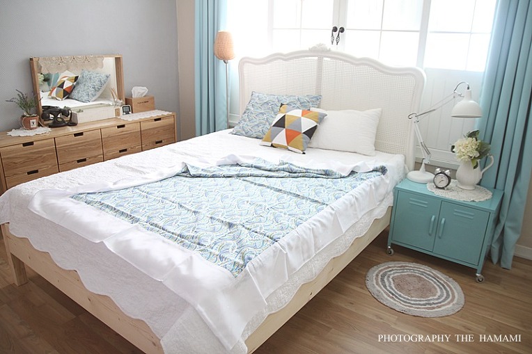 시원한 블루빛 인견 이불을 매치해 보았답니다.