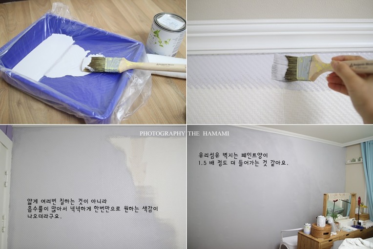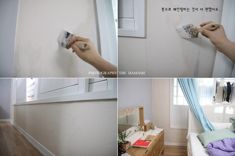 일반적인 벽지 위에 그대로 페인팅을 하는 것보다는 만족감이 뛰어나고