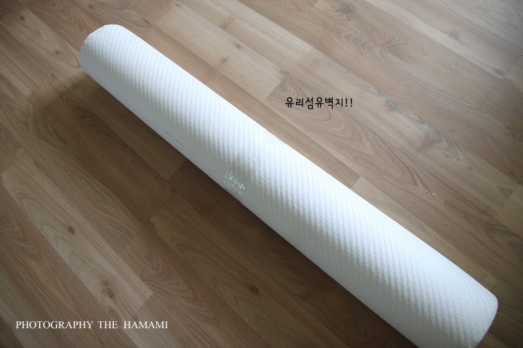 시공하고자 하는 벽면의 길이보다 약간만 더 길게 재단해 놓았어요.