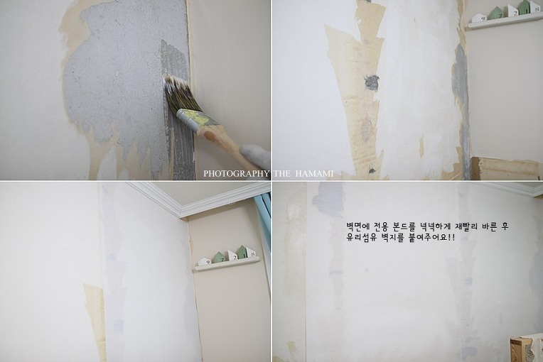 접착은 유리섬유벽지 전용 접착제가 따로 있답니다.