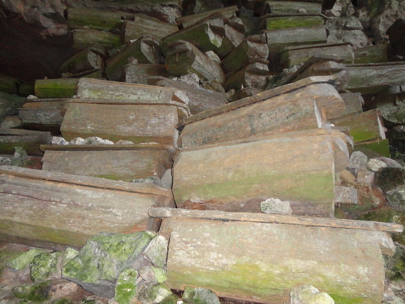 퇴색한 나무관과 그 색깔을 닮은 바위들이 한데 엉켜있어 자칫 ‘보고도 못 본’우를 범할 수 있을 만큼 관들은 이채롭지 않습니다. 그도 그렇것이 이 관들은 재대로 만든 현대적인 모양새와 다르기 때문입니다. 나무통을 파내 그 곳에 시신을 안치한, 그것도 1미터50센티를 넘지 않는 작은 모양들이기에 더 그렇습니다.
