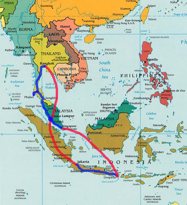 약 3주 일정으로 KL(쿠알라룸푸르)-자카르타-반둥-족자카르타-브로모화산-이젠화산-발리-싱가폴-KL로 귀환하는 루트이다.