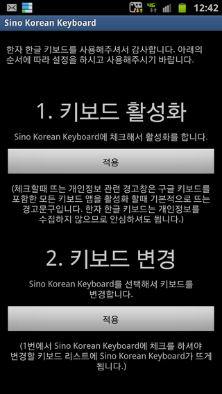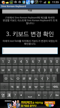 1. 키보드 활성화> 적용>Sino Korean Keyboard를 선택(첵크)