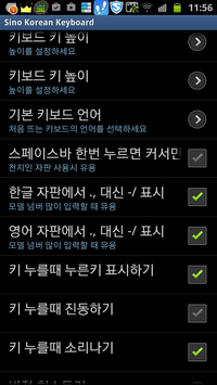 2. 키보드 변경> 적용>Sino Korean Keyboard를 선택(첵크)