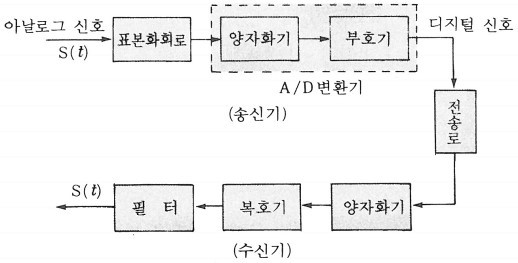 양자화기와 부호기(encode)를 조합한 것을 A/D(analog to digital converter)라 부르는데 여기에 아날로그 신호의 표본치가 가해져 양자화 된 표본치를 나타내는 부호계열[pulse 열(列)]로 변환된다. 수신된 디지털 신호[pulse 열(列)]에는 전송로 잡음이 중첩되어 있는데 이 잡음에서 신호를 분리하는 것이 수신기의 양자화기이다. 복호기(decoder)는 D/A(digital to analog converter)라고도 하는데 부호기와는 반대의 동작을 한다.