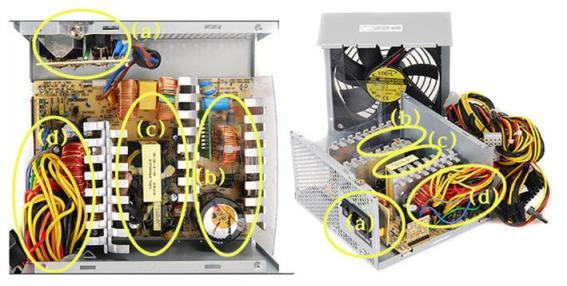 6. 기타 회로들 - 위에선 파워서플라이가 구동되는 기본 회로에 대해서만 설명했다. 그러나 PSU가 제대로 만들어졌다고 하기 위해선, 전력 효율과 전자파 감소 등에서 중요한 역할을 하는 Active PFC 회로나, 갑자기 정전이나, 낙뢰 등으로 과전압이 발생했을 때 시스템을 보호해 주는 과전압 방지회로 등, 갖춰져야 할 것들이 더 있음을 알아야 한다. - 메이저급 회사에서 만든 PSU와 묻지마(듣보잡) 회사에서 만든 PSU는 그런 안전 회로들을 얼마나 잘 구비했느냐와, 4단계의 기본 회로를 구성하는 각종 부품들을 얼마나 믿을만한 것으로 썼느냐에서 차이가 나는 것이므로, 평소 검색 등을 통해서 정보를 얻어야 한다.