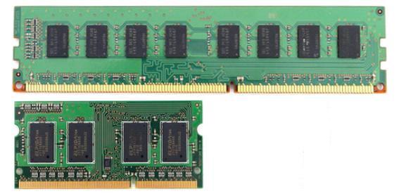 데스크탑용 램 모듈(위)와 노트북용 램 모듈 (아래)