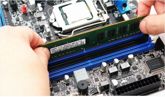 메모리 슬롯에 램 모듈을 설치하는 모습