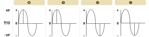 ④ 교류 전압이 -VP에서 0으로 상승하면 콘덴서에 충전된 전하가 방전한다.