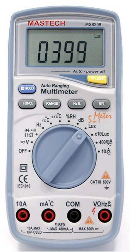 위의 그림과 같이 최근에 나오는 멀티미터는 조도, 온습도 및 소음측정도 가능하다.