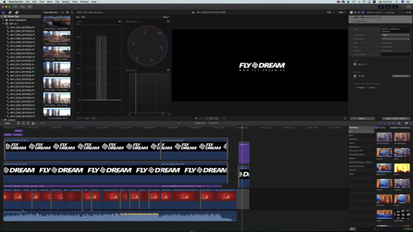 특히 촬영한 영상클립 위에 마우스를 올려 좌우로 움직이는 것만으로도 영상 내용의 빠른 확인이 가능한 라인 스키밍 기능과 클립과 클립 사이를 자동으로 붙여주는 마그네틱 타임라인 기능 등이 대표적입니다. 모션그래픽 편집프로그램인 모션 5와의 연동 및 수많은 파이널컷 전용 영상효과 플러그인을 사용하여 세련되고 전문적인 영상의 제작이 가능합니다.