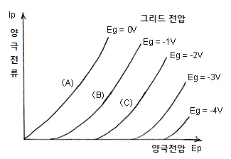 2극관의 플레이트(양극) 전압에 대한 플레이트 전류의 변화 (Ep-Ip특성)