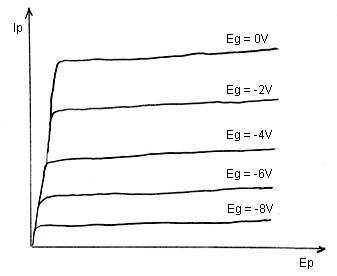 최종적으로 아래 그림과 같은 곡선 군을 그리게 되는데, 이것이 3극관의 Ep-Ip 특성 곡선 입니다.