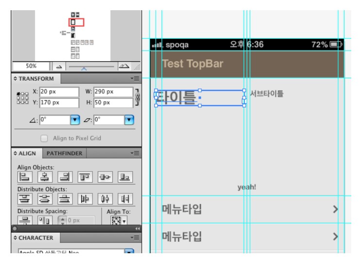 셋째로 가이드guide 기능을 통해 효과적으로 그리드 시스템을 운용할 수 있습니다. 기본적으로 Illustrator에서의 가이드는 오브젝트와 동일 취급이 됩니다. 그렇기 때문에 가이드를 쉽게 복제 및 이동하여 다른 캔버스 및 파일로 이동하여 사용할 수 있습니다. 또한 정확하게 가이드의 위치 좌표 값을 설정 가능하기에 보다 확실하게 그리드 시스템을 운용할 수 있습니다.