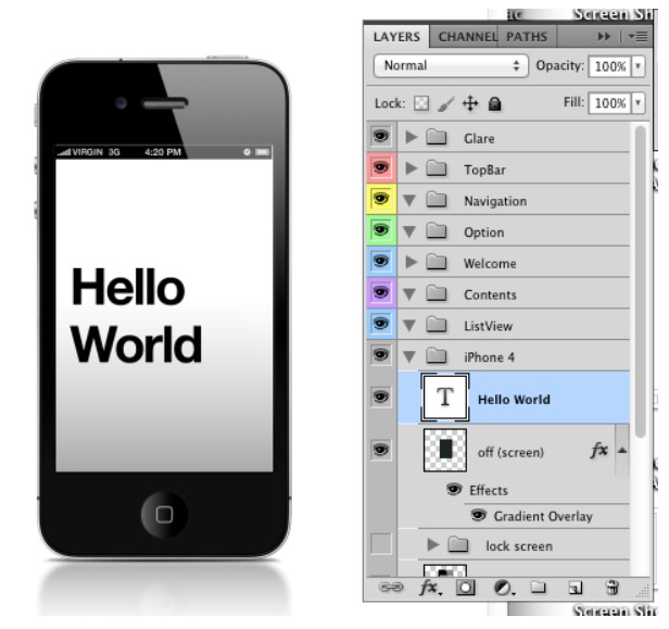 비트맵 이미지의 편집 툴로는 대표적으로 Adobe Photoshop이 쓰이고 있습니다. Photoshop은 현재 GUI 작업에 가장 많이 쓰이고 있습니다. Photoshop은 Drop Shadow나 Inner Shadow, Emboss 등의 Effect 효과의 퀄리티가 가장 좋기 때문에 애플과 같은 스큐어모프skeuomorph한 장식적인 GUI를 제작하기에 가장 효과적인 툴입니다. 스큐어모프skeuomorph (http://en.wikipedia.org/wiki/Skeuomorph)라는 개념은 나중에 한 번 기회를 내서 소개해 드리겠습니다.