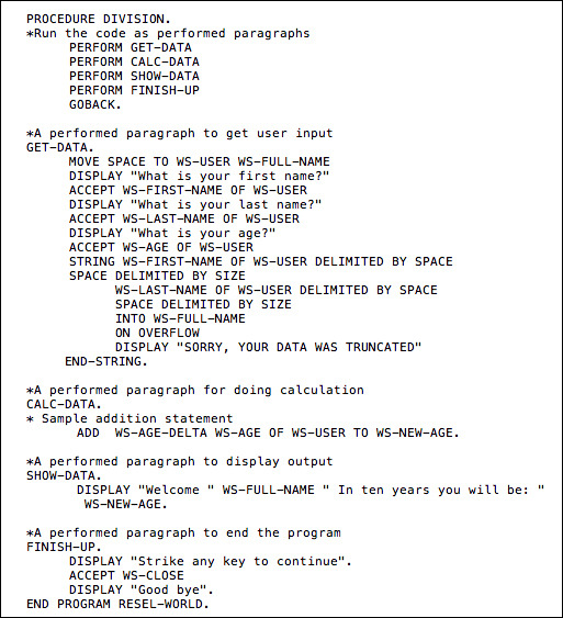 오늘날 모든 코볼 참조 매뉴얼에는 다음과 같이 인쇄되어 있다: