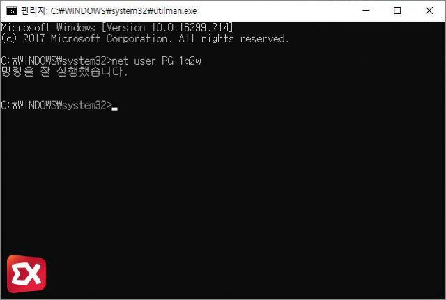 명령 프롬프트에서 위와 같은 요령으로 사용자 계정의 비밀번호를 재설정한 다음 cmd 창을 닫고 지정한 암호로 로그인하면 비밀번호 분실 문제가 해결됩니다.