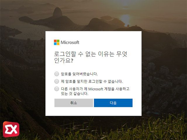 마이크로소프트 계정 암호 찾기 페이지 이동