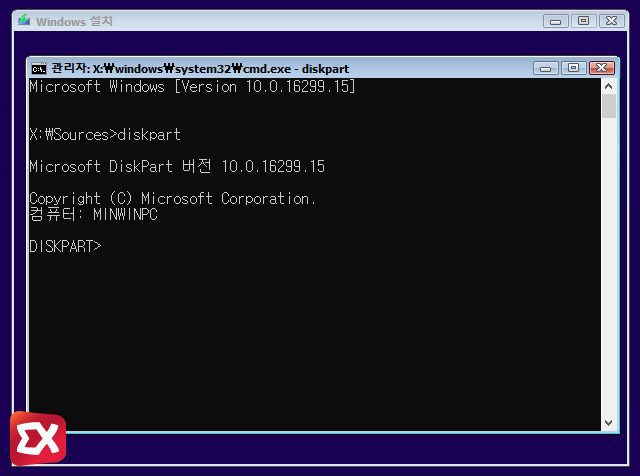 명령 프롬프트에서 diskpart 를 입력합니다.