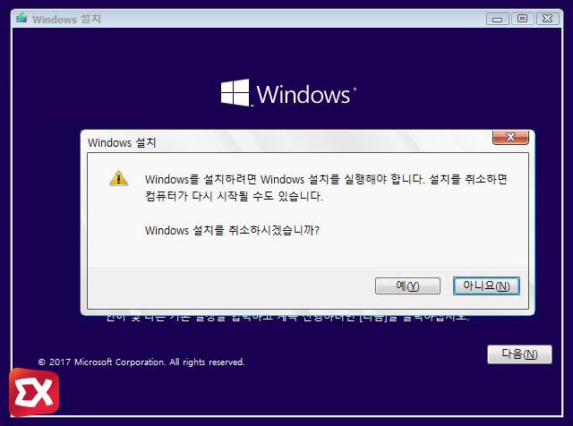 복사가 완료되면 윈도우 설치를 취소한 다음 윈도우로 재부팅합니다.