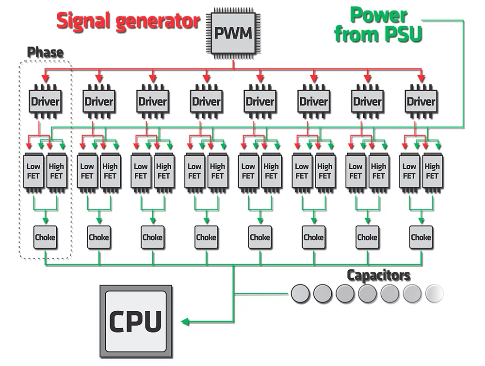 페이즈 수가 많으면 각 페이즈에 걸리는 부하가 줄어드므로 부품 수명 등을 고려했을 때 좋을 테고, 제조사에서도 '우리 회사 보드는 ~페이즈가 박혀 있다!'니 뭐니 광고를 때려 댄다. 여기에는 크게 3가지 함정이 있는데...