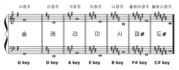 음악에 있어서 스케일(Scale)에 대비해 조와 조표 모음을 그림으로 간단하게 알아보고 넘어갈까 합니다.