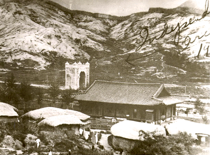 전일에 이 관 앞에는 홍살문이 있었고 부근에는 큰 연못이 있었으며 연못가에 쟁반처럼 우거진 큰 소나무 아래에는 10여 보를 거닐 수 있는 넓은 빈터가 있었다.
