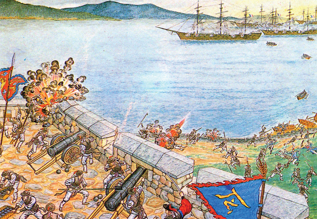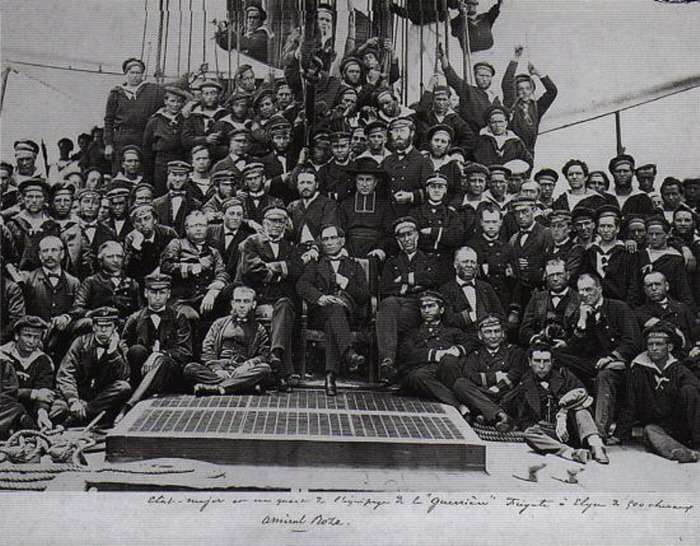 1865년 일본 나가사키 항 주변에 정박 중이던 프랑스 함대의 모습. 중앙에 보이는 것이 기함인 순양함 게리에르(Guerriere)이다.