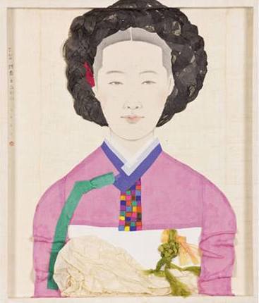 붉은 치마를 입고 양어깨를 내놓고 쪽진 머리카락은 엉클어져 있었고