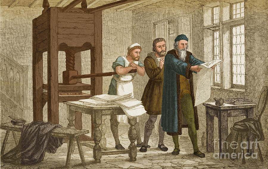 수도사나 수녀들이 이렇게 필사한 성경은 로마 카톨릭 교회 일부 성직자들의 전유물이 되었다. 그러나 2백 년이 지난 1455년, 구텐베르크는 자신이 발명한 금속 활자를 이용하여 3년 남짓한 기간에 성서 180부를 찍어냈다.