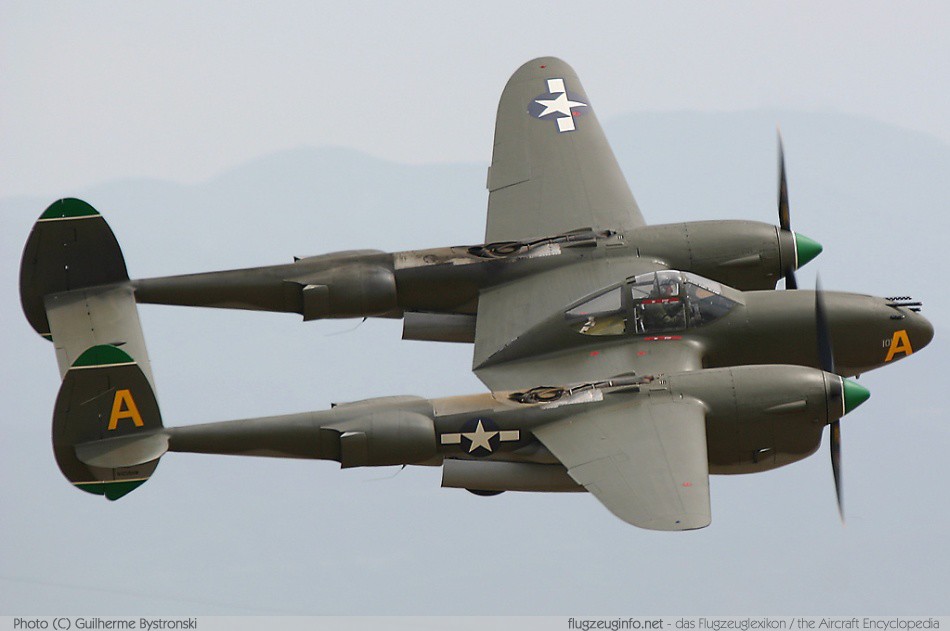 제2차 세계대전 당시의 미국 육군 항공대의 전투기. 특이하게 달린 쌍발엔진이 특징으로 이 덕분에 ‘쌍꼬리의 악마(fork-tailed devil)’란 별명을 얻었다. 기관총 등의 무장이 기수의 콧등에 몰려 있어서 명중률이 높았으며 일반적인 전투기의 몸통이 있어야 할 곳이 텅텅 비어있고 장갑도 비교적 튼튼해 의외로 생존율도 괜찮았다. 설계자는 스컹크 웍스의 초대 보스로 유명한 켈리 존슨.