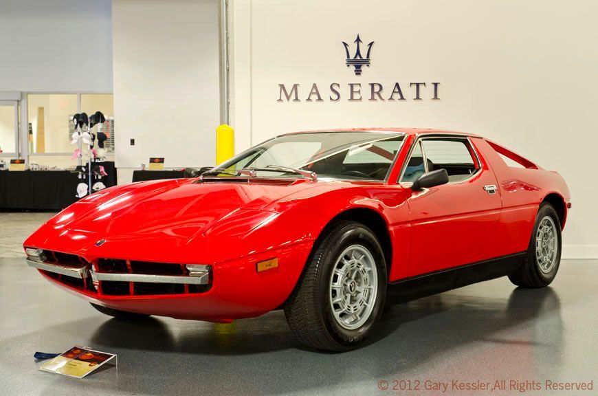 메락은 2+2인승에 미드쉽 스포츠카이다. 1972년부터 1983년까지 생산되었으며, 마세라티 보라와 아주 비슷하다. 섀시와 바디패널을 공유하지만 보라의 4.7L V8 대신 3.0L V6을 사용한다. 1972 파리 모터쇼에 처음 선보였고 경쟁 모델들은 같은 미드쉽 레이아웃을 사용하는 페라리 디노 308 2+2와 람보르기니 우라코 P250이었다. 메락은 경쟁 모델들과 다르게 강철 모노코크 바디를 사용하였다. 마세라티는 187마력의 기본형과, 217마력을 탑재한 경량 버전인 메락 SS, 그리고 이탈리아 내수용 저성능 2.0L V6 엔진을 올려놓은 메락 2000GT를 내놓았다.