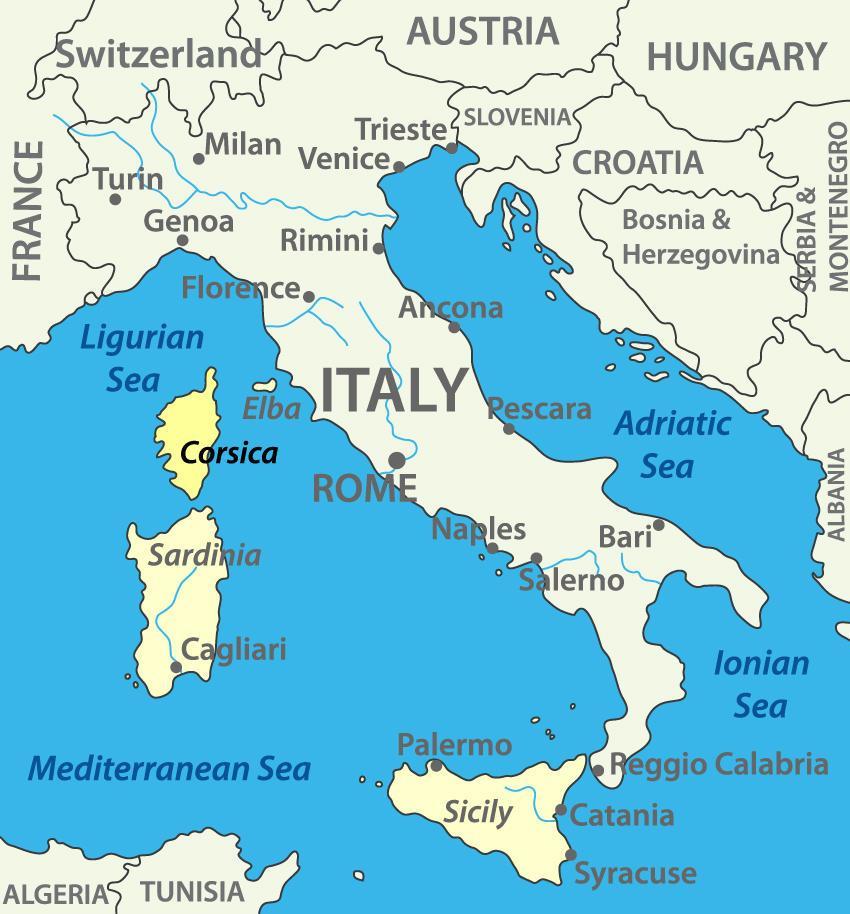 코르시카 섬은 기원전 237년까지 카르타고의 세력권에 속해 있었으나, 포에니 전쟁 후인 기원전 237년 로마 공화국이 섬을 차지하게 되었다. 430년 반달족의 로마 정복 때까지도 여전히 로마의 지배하에 있었으며, 522년 동로마 제국에 편입되었다. 로마 제국의 통치가 막을 내리면서 코르시카 섬은 아랍 제국, 롬바르드 등 여러 다양한 세력의 지배를 받았으며, 1282년 마침내 피사와 멜로리아 전투 후에 제노바 공화국의 속령이 되었다. 한때 아라곤 왕국(1296년 ~ 1434년)과 프랑스(1553년 ~ 1559년)에 점령되기도 했으나, 섬은 1768년 프랑스에 팔릴 때까지 제노바의 영토였다. 코르시카 섬이 프랑스에 팔린 뒤 1년 뒤인 1769년 아작시오에서 하급 귀족의 집안에서 나폴레옹 보나파르트가 태어났다.
