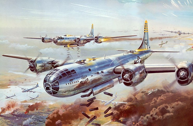 B-29는 당초 군사 공장 등에 적용되는 고고도로부터의 정밀 폭격에 이용되었다. 원래 고공 전용의 기관을 가지지 않고, 재료나 공원의 질이 저하된 후, 고급의 항공기 연료의 입수도 불가능해진 제2차 세계 대전 후기의 일본의 전투기가 B-29를 요격하는 일은 매우 어려웠다. 요격에는 단좌형 전투기인 일본 해군의 국지전투기 등이 사용되었지만, 1만 m의 고공에서 비행하는 배기 터빈을 장비한 B-29를 고속으로 따라잡는 것도 어려웠고,겨우 B-29를 요격할 수 있는 고도로 올라가 일격을 가하면 고도가 떨어져 고도를 회복하지 못해 공격이 계속되지 못했다. 이 때문에 진천제공대(대B-29 공대공 특공대)에 의한 전력투구 공격도 행해졌다.
