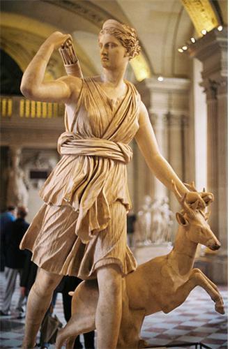 아르테미스의 분노는 잘 알려진 것인데, 이것은 신화가 인간에 대한 자연의 적대감을 그녀의 속성으로 묘사하고 있기 때문이다. 그러나 그리스의 조각가들은 아르테미스의 무자비한 분노를 주제로 삼기를 꺼렸으며, 비교적 부드러운 BC 4세기경의 정신이 만연할 때까지 아르테미스는 위대한 조각가들의 주제로는 인기가 없었다. Artemis(아르테미스)-그리스 / Diana(디아나)-로마 / Diana(다이아나)-영어