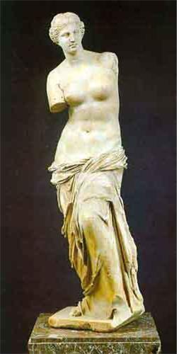 베누스라고도 한다. 원래는 로마신화에 나오는 채소밭의 여신이었으나, 그 특성이 그리스신화의 아프로디테와 일치하므로 아프로디테와 동일시되었다. 이 여신은 로마시대부터 르네상스시대를 거치면서 특정의 민족신화의 틀을 벗어나, 여성의 원형으로 서양 문학과 미술에서 폭넓게 다루어졌다. 호메로스에서는 아프로디테가 천공(天空)의 주신(主神) 제우스와 바다의 정령(精靈) 디오네의 딸로 되어 있는데, 헤시오도스에서는 천공의 신 우라노스와 그의 아들 크로노스와의 싸움에서 비롯된 것으로 되어 있다. 즉, 크로노스는 어머니 가이아의 음부 속에 숨어 있다가 아버지의 성기(性器)를 낫으로 잘라 바다에 던졌다. 이렇게 하여 바다를 떠다니는 성기 주위에 하얀 거품(아프로스)이 모이고, 그 거품 속에서 아름다운 처녀가 생겨났다.