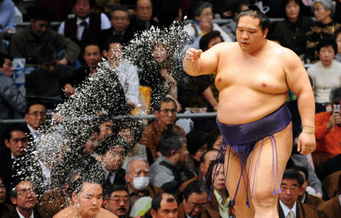 스모 경기 중 임팩트 있는 시합 이 나오면 관중들이 방석을 집어던지는 퍼포먼스를 해준다. 그리고 '위험하니 방석을 던지지 마시오.' 라는 장내방송이 흘려나온다.(...) 물론 방석 자체가 위험한 건 아니지만 가끔 착각해서 방석이 아닌 소지품을 던진다거나 애먼 물건을 애먼데 맞추거나 하는 경우가 종종 있는 듯.