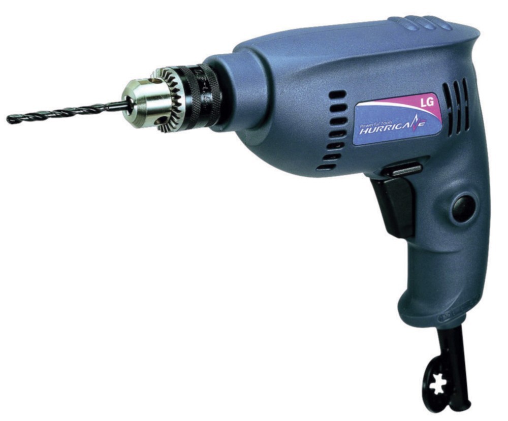 ▼ 일반 전기 드릴 : 가장 일반적으로 사용되는 유선식 드릴로 대부분 브랜드가 이렇게 생겼다. 주로 '해머+드라이빙 기능'과 '드라이빙' 기능을 갖고 있다. 토크 조절 기능이나 안전 클러치가 없어서 항상 최고 구동력으로 작하므로 주의해서 사용해야 한다. 해머 기능이 있어서 10mm 이하의 콘크리트 타공이 가능하니 일반 가정에서 필요한 콘크리트 타공은 거의 다 할 수 있다.