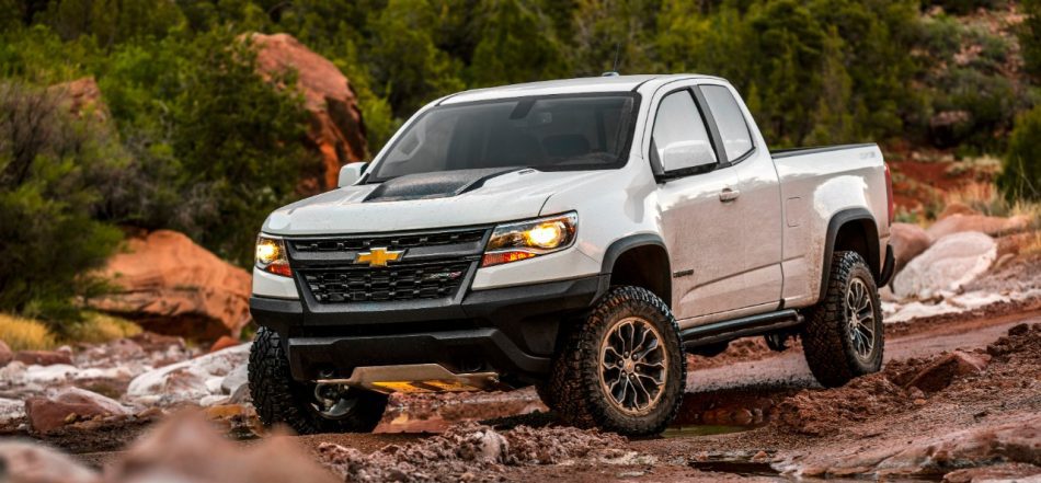 쉐보레 콜로라도 ZR2. 오프로드에서 최고수준의 성능인 Multimatic 서스팬션과 181마력의 2.8리터 듀라맥스 디젤, 200마력의 2.5리터 4기통 엔진, 308마력의 3.6리터 V6 가솔린 엔진이 있다.