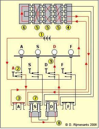 즉 에니그마는 간단히 얘기하자면 키보드의 글자와 램프의 글자가 1대1로 회로를 통해 연결되어있고, 키보드를 누를 때마다 그 회로가 기어의 회전에 의해 바뀐다.