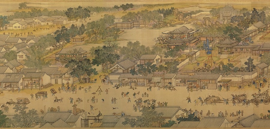 2) <고소번화도姑蘇繁華圖>의 본래 이름은 <성세자생도盛世滋生圖>. 소주 지역의 경제적 번성을 중심으로 ‘태평성대’의 모습을 표현하고자 기획된 그림