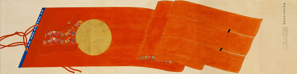역사를 거슬러 올라가면 700년대부터 사용하였다고 한다. 동그라미 하나라는 모양새는 그때나 지금이나 같았지만, 그때는 화려한 붉은색 비단에 노란색 또는 금색으로 원이나 국화 문장을 그려 '니시키노미하타(錦の御旗)'라고 부르며 일본 조정을 상징하는 깃발로 사용하였다. 비단도 단순히 붉은색으로만 물들이지 않고 이런저런 문양을 넣은 고급품을 사용하는 사례도 많았다. 겐페이 전쟁에서 양 진영의 깃발색에서 유래했다는 이야기도 있다.